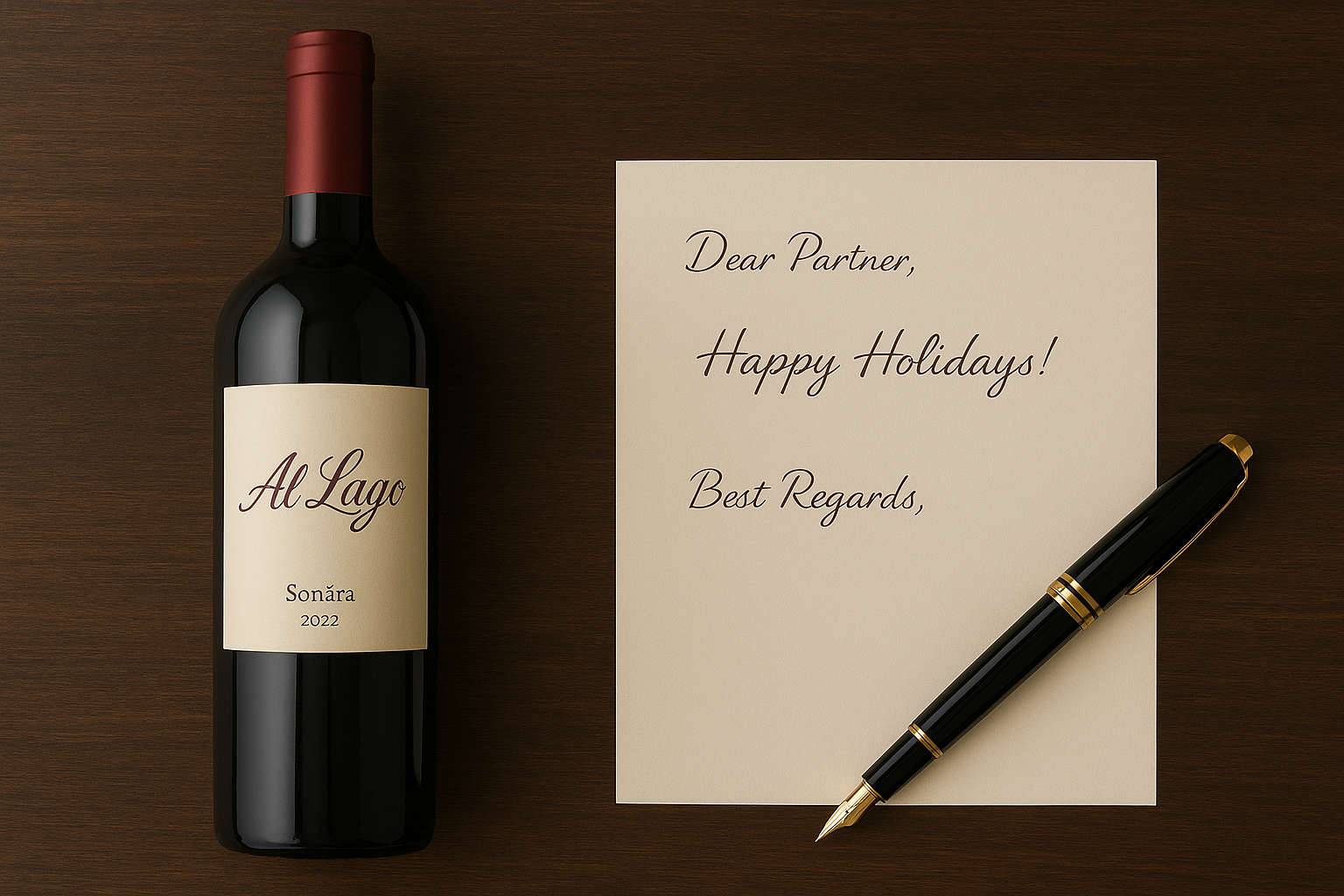 Gift baskets and branded trinkets have their place, but corporate holiday wine gifts carry an unmatched level of luxury and timelessness. A bottle of Al Lago instantly conveys elegance, gratitude, and confidence in the relationship.
