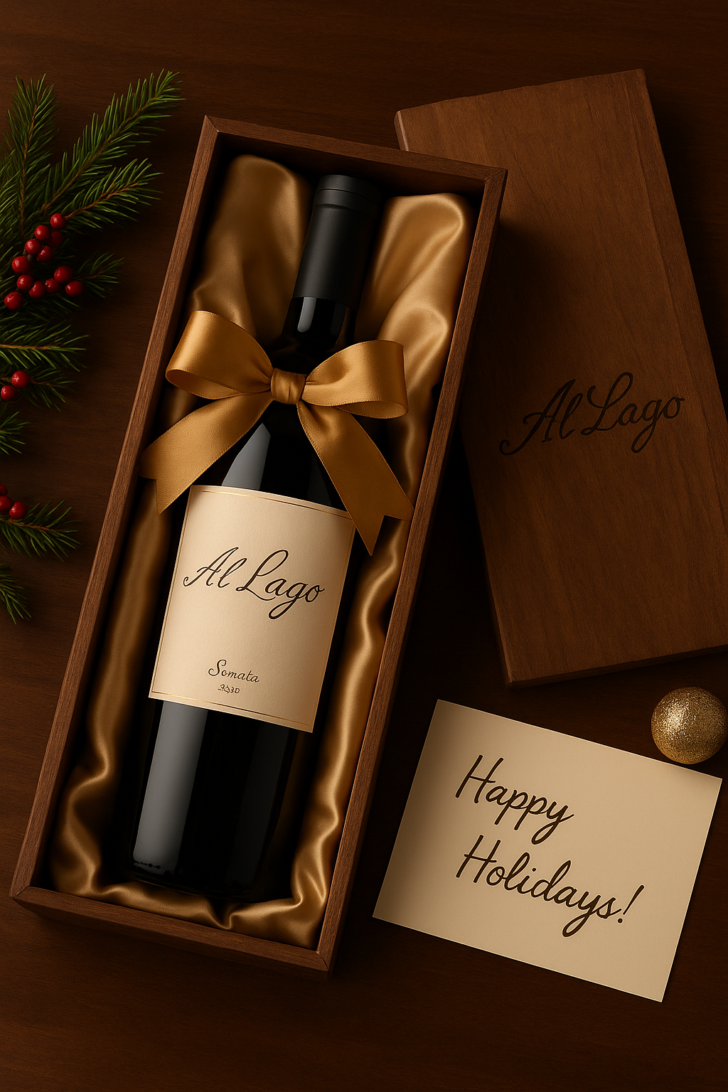 At Al Lago Wines, our handcrafted, small-batch Italian reds embody luxury, exclusivity, and refined taste—everything your discerning clients deserve. Presented in customizable wood gift boxes with your logo, our wines transform corporate gifting into an unforgettable experience. Ready to make a lasting impression?